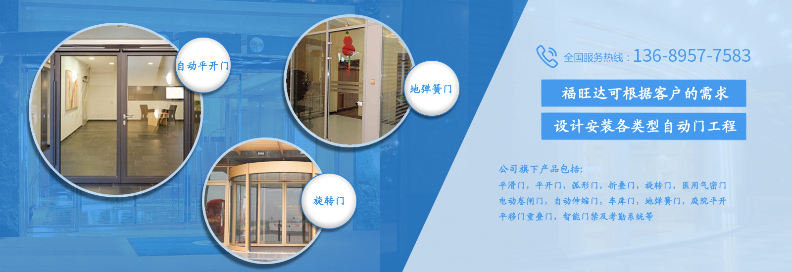 深圳市福旺達(dá)自動(dòng)門有限公司集產(chǎn)品設(shè)計(jì),制作,銷售,安裝,售后服務(wù)為一體,我們專營自動(dòng)門和門禁系列產(chǎn)品,專業(yè)制作安裝國內(nèi)外品牌自動(dòng)門,門禁控制系統(tǒng)。福旺達(dá)引進(jìn)國外先進(jìn)技術(shù),先進(jìn)檢測手段,精湛的施工工藝,專業(yè)誠摯的服務(wù)形象,先進(jìn)門控系統(tǒng),以滿足客戶的高需求,贏得業(yè)內(nèi)普遍的贊譽(yù)!產(chǎn)品包括:平滑門,平開門,弧形門,折疊門,旋轉(zhuǎn)門,醫(yī)用氣密門,電動(dòng)卷閘門,自動(dòng)伸縮門,車庫門,地彈簧門,庭院平開平移門,重疊門,智能門禁及考勤系統(tǒng)等,廣泛用于寫字樓,大型購物中心,酒店,醫(yī)院,商鋪,倉庫,廠房,銀行,家庭等,福旺達(dá)可根據(jù)客戶的需求,設(shè)計(jì)安裝各類型自動(dòng)門工程.......